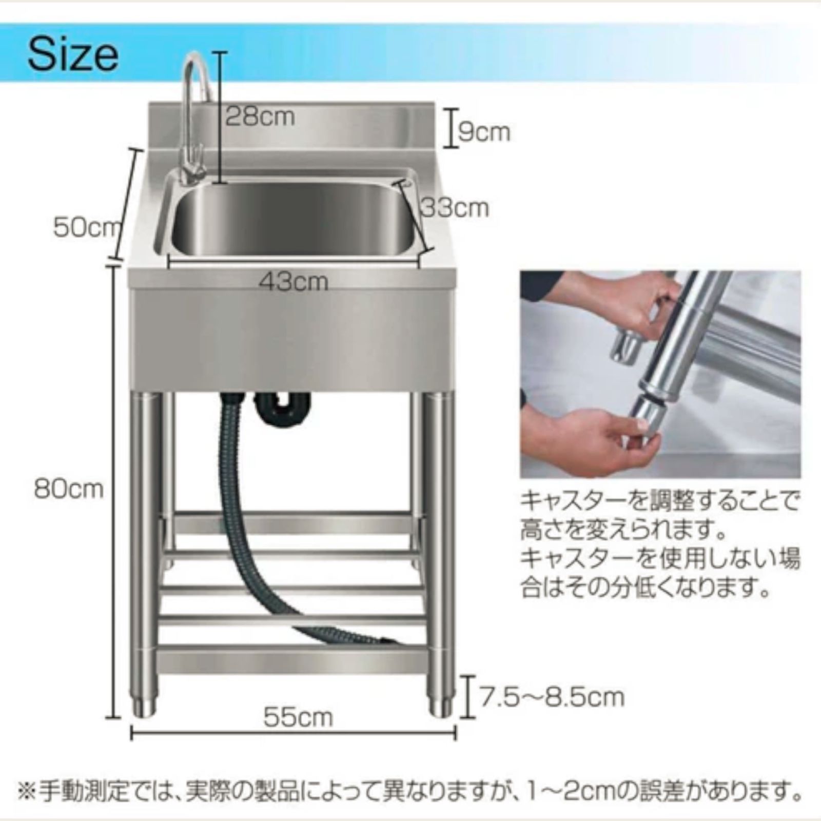 758 ステンレス製 流し台 約幅55×奥行き50×高さ80 cm 蛇口付き 必要な が全てセット B 55 本島 の その他 へは別途配送料有り