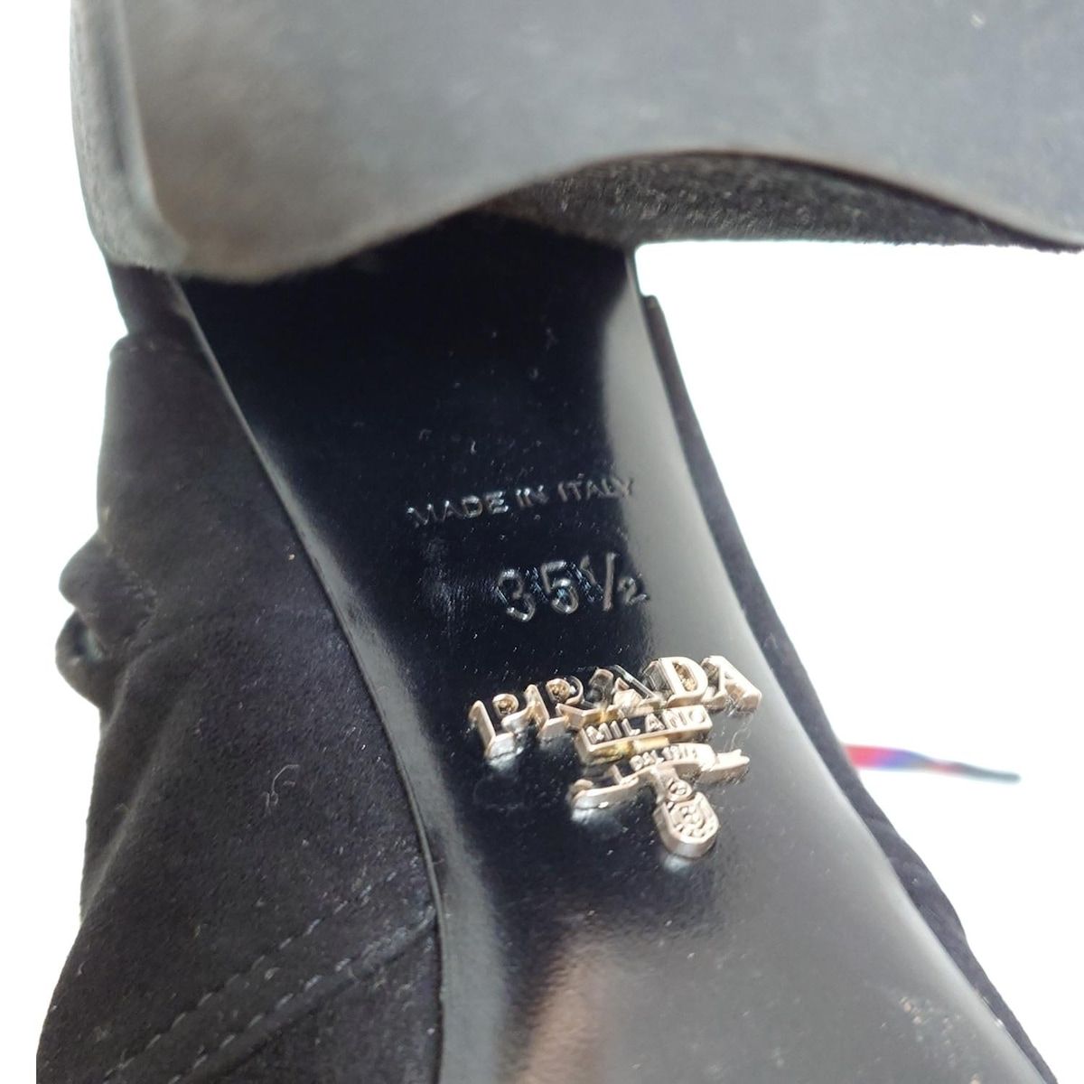 PRADA プラダ ショートブーツ 35 1 2 レディース - 黒×マルチ オープントゥ