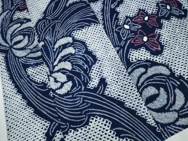 平和屋着物∴夏物 浴衣 有松鳴海絞り 乱菊 流水舞蝶文 綿 ng