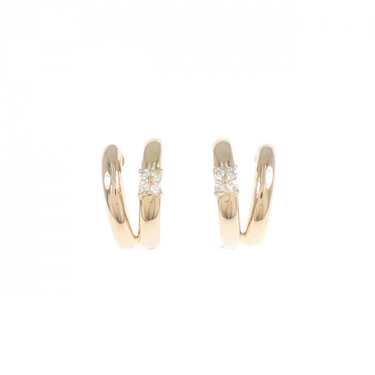K 18 PG YG フラワー ダイヤモンド ピアス 0.04 CT
