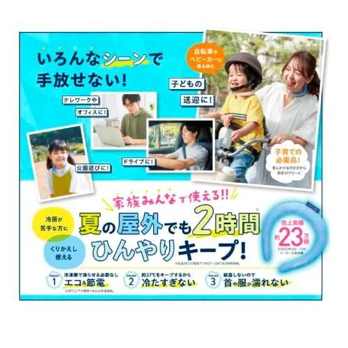日経トレンディ2022年ヒットランキング総合3位 夏の屋外※で約2時間ひんやりが続く冷感商品。*気温36℃の環境下で約27~28℃を2時間持続(ユニチカガーメンテック株式会社調べ) 猛暑対策!NECKTYPE男女兼用。繰り返し使える。結露しない。28℃以下で自然凍結。 軽量でジャマにならない。 幅広タイプでしっかり冷やす。 首の後ろ部分の幅2.8cm。 気温28℃なのに凍る。 アウトドアに。 リラックスタイムに。 スポーツに。家事に。 NASA開発の特殊素材「PCM」を使用。アメリカ航空宇宙局NASAが研究開発した、温度調節機能を持つ特殊素材を採用。