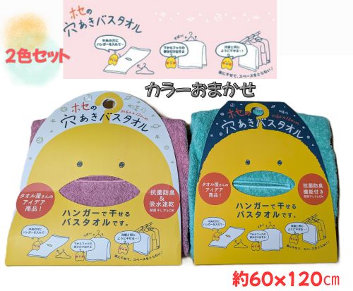 本多タオル ホセの穴あきバスタオル 60×120cm ハンガーに干せる 抗菌防臭 2色セット
