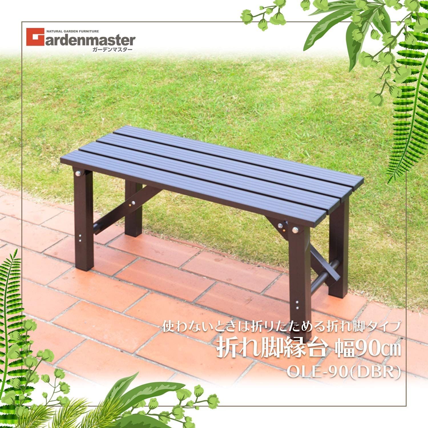 [ガーデンマスター] 折りたたみ縁台 幅90×奥行36×高さ40cm ガーデンベンチ ガーデンチェア ベランダ バルコニー 軽量 踏み台 玄関台 お庭 ガーデンマスター ダークブラウン OLE-90
