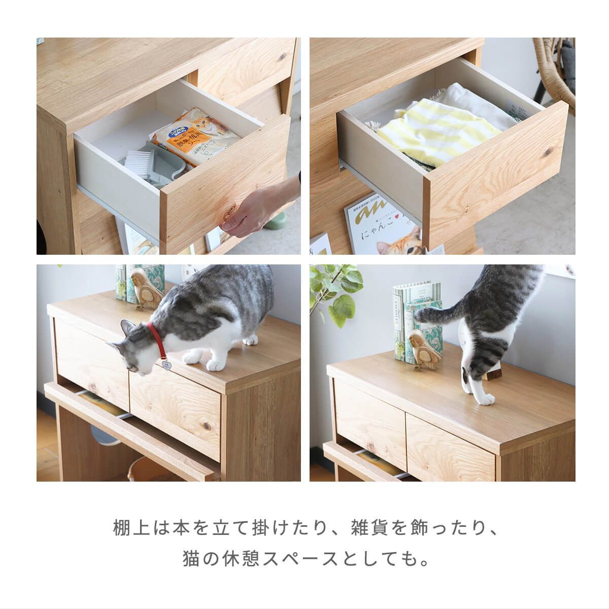 猫 チェスト ローチェスト キャビネット 猫家具 トイレ 収納 完成品 国産 無垢材 天然木 ペット家具 ネコ用品 収納付き キャット おしゃれ ペット用品 リビング収納 棚 引き出し 北欧 シンプル マガジンラック 幅75 商 大 才 9