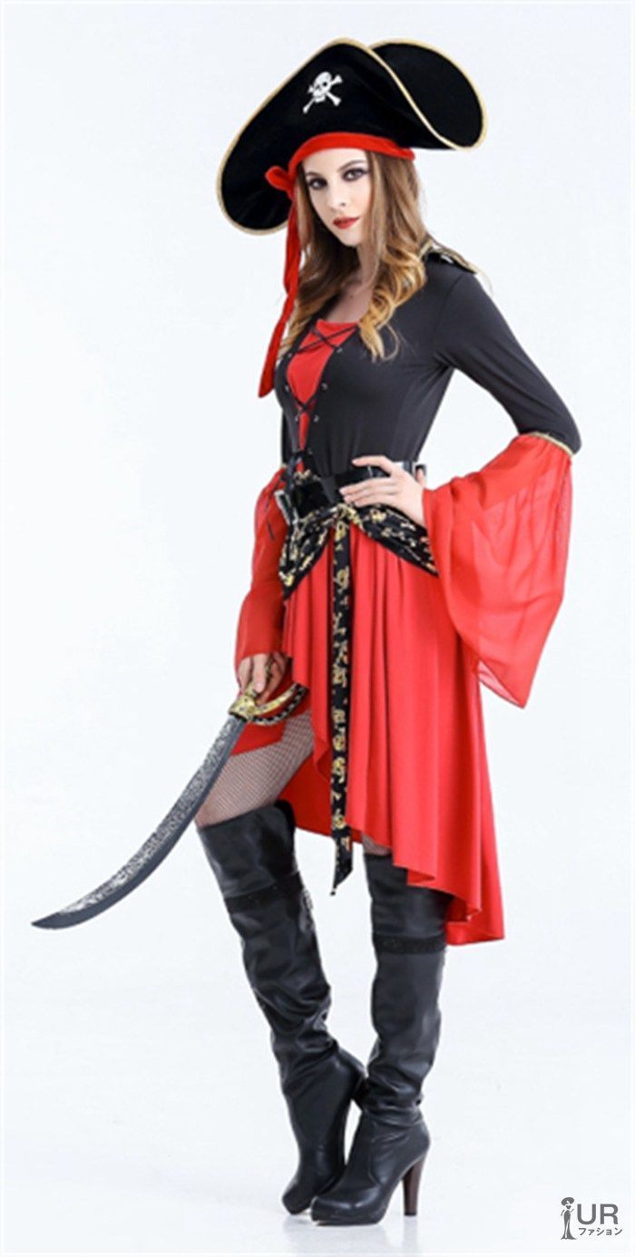 仮装 海賊 パイレーツ コスチューム衣装 大人 レディース コスプレ衣装 ドレス ハロウィーン コスプレ 女海賊 船長 帽子 なりきり コス セット 女性 大人用 yousi 01