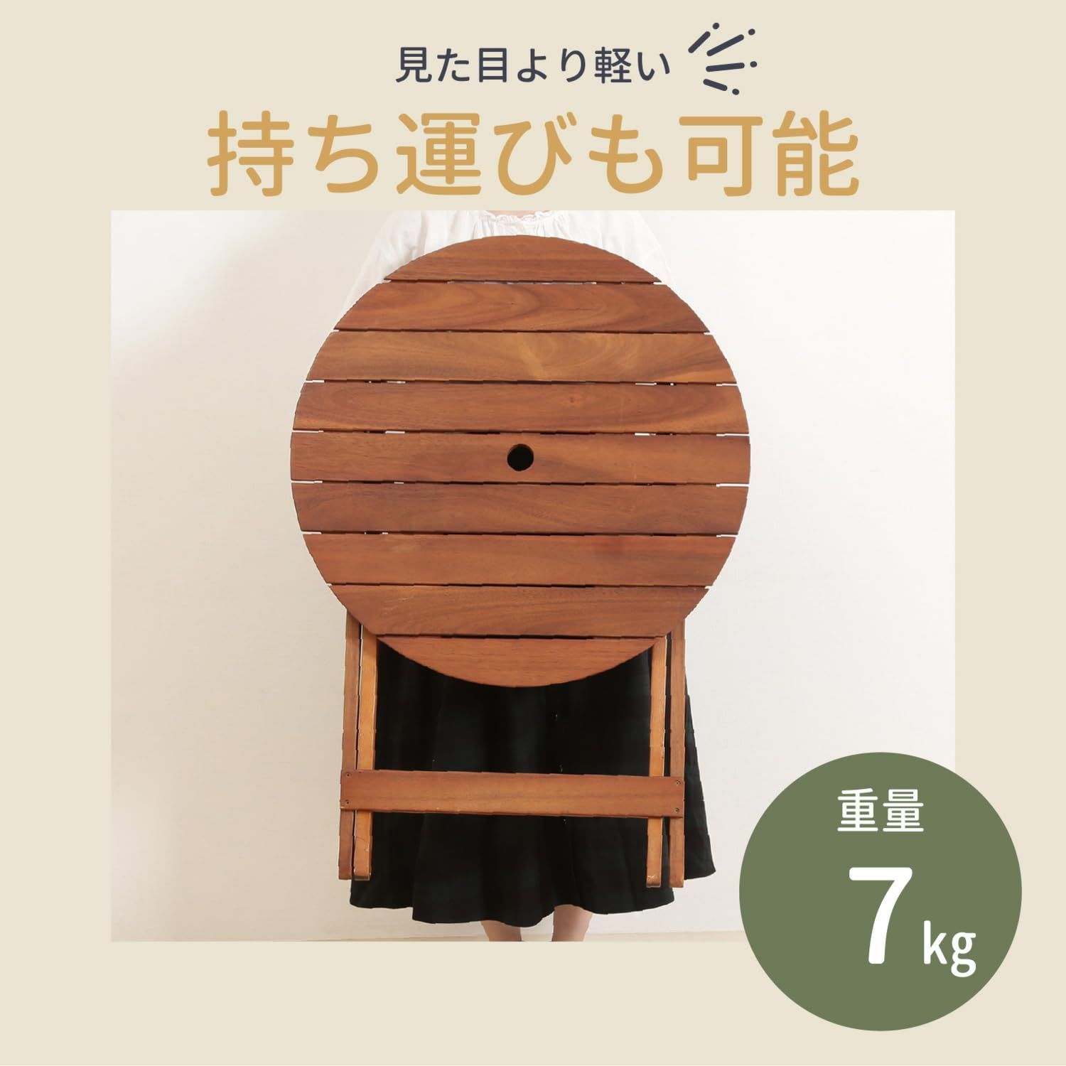ガーデン テーブル ラウンド 幅68 5 奥行68 高さ72 cm ブラウン 天然木 折りたたみ パラソルホールつき
