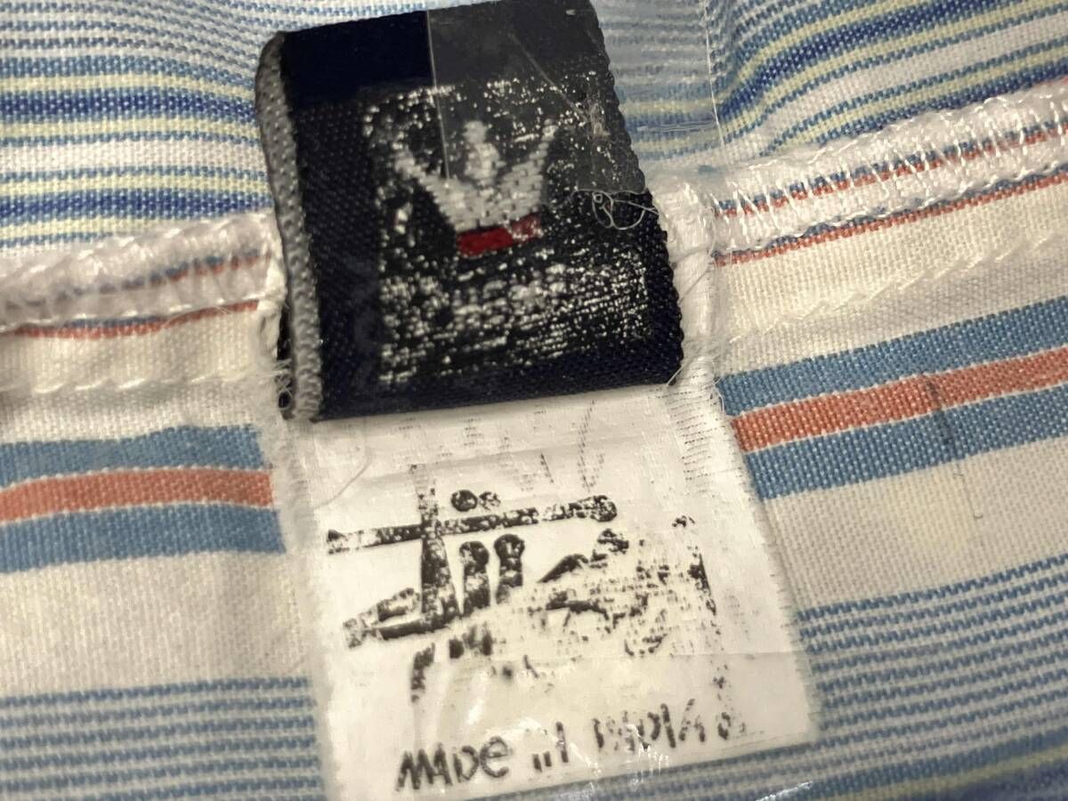 STUSSY ステューシー 半袖シャツ メンズサイズM ブルー系ストライプ柄