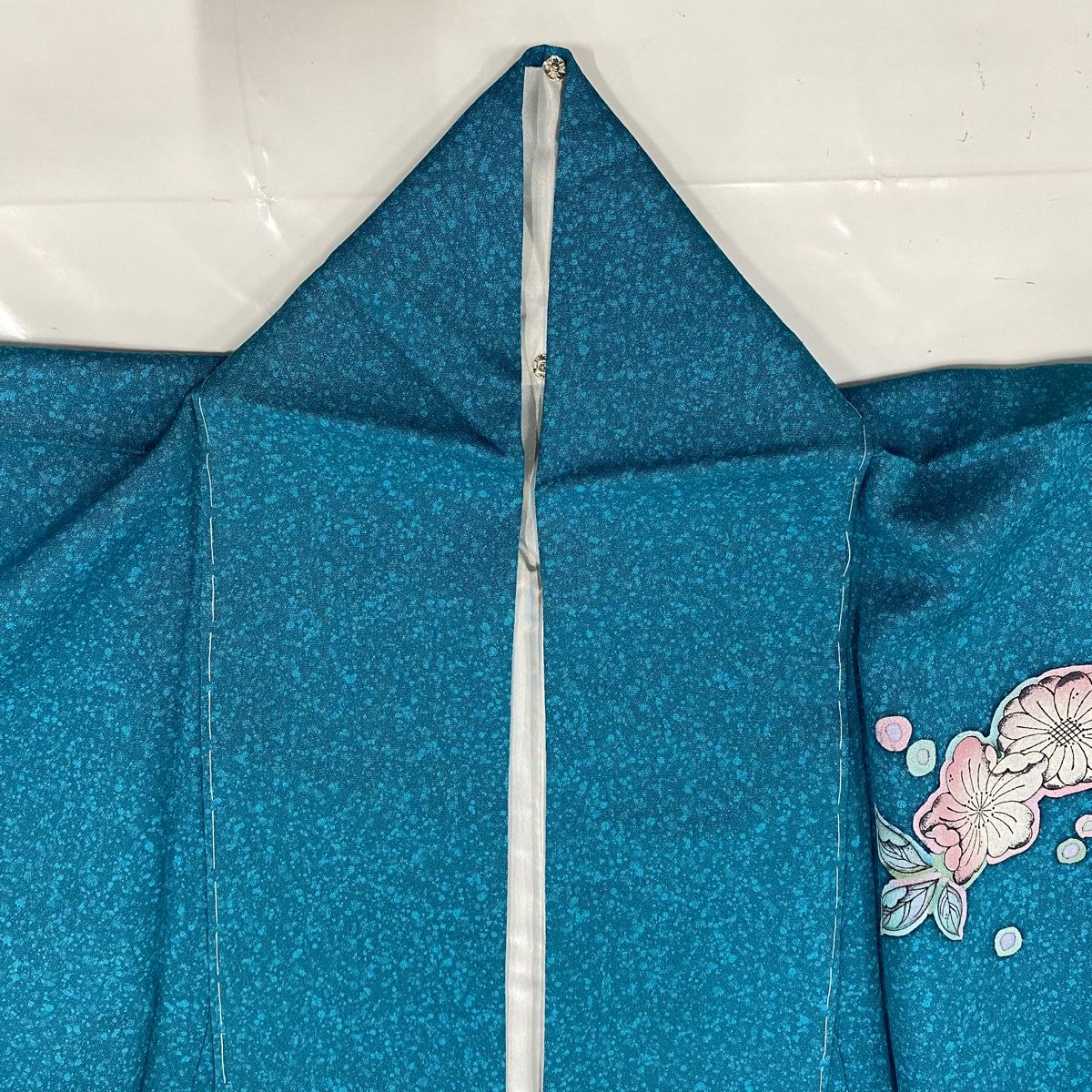 付下げ 身丈158 cm 裄丈63.5 S 袷 草花 ぼかし 青緑 正絹