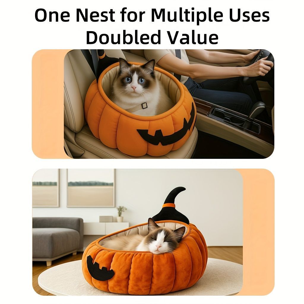猫ベット ポリエステル ペットハウス 完全密閉型ドッグベッド かぼちゃ おばけ 秋冬 あったか モダン キュート ホラー 癒し
