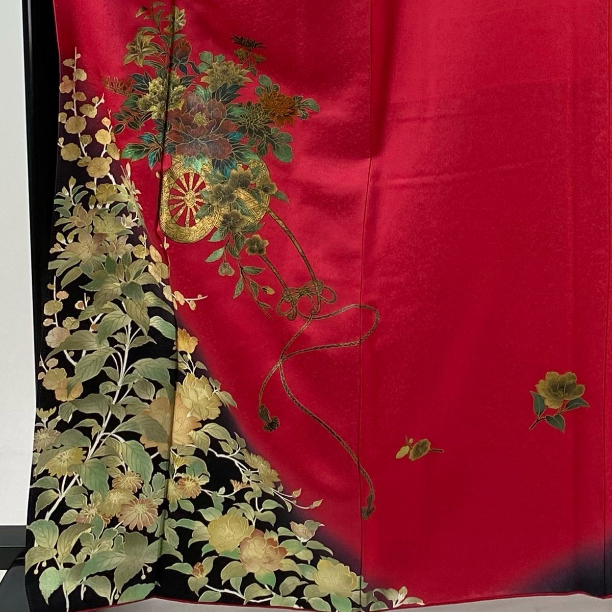 振袖 身丈166.5 cm 裄丈65 M 袷 花車 草花 金彩 染め分け 赤 正絹 秀品