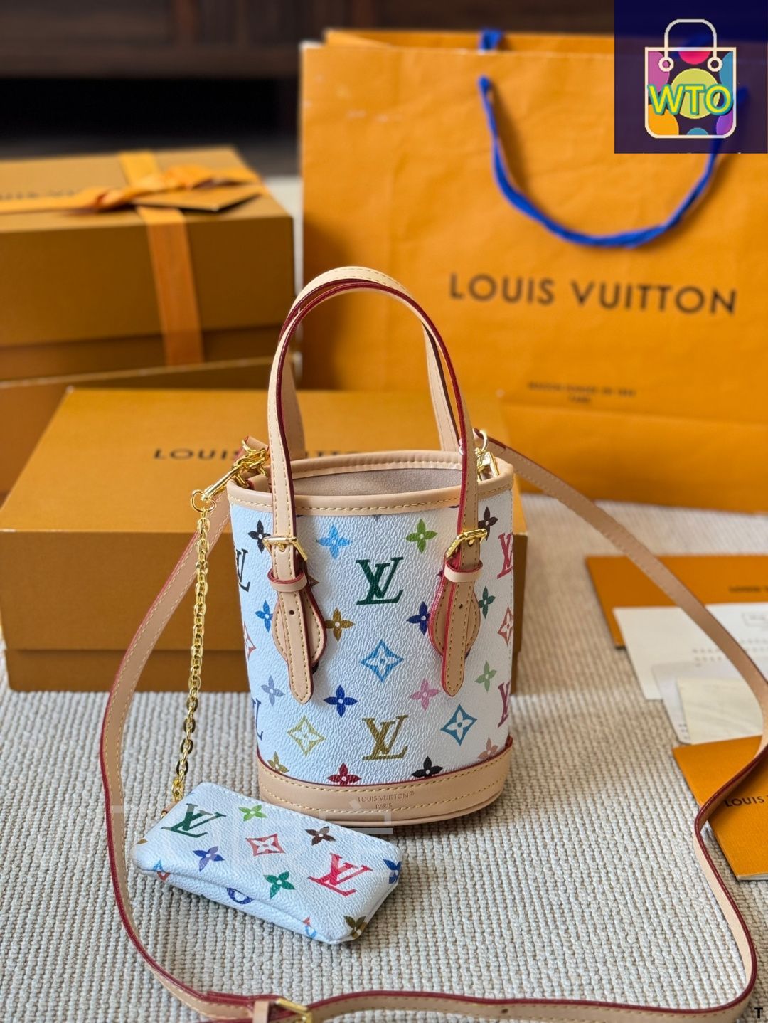 今日 LV Mini White Multicolore Bucket Bag - ミニ ホワイトマルチカラー バケットバッグ-WTO輸入1