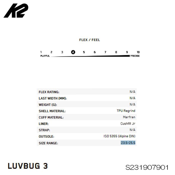 23-24 K 2 ケーツー スキーブーツ ジュニア キッズ LUVBUG 3 ラブバグ3 ルブバグ3 3バックル日本 旧モデル