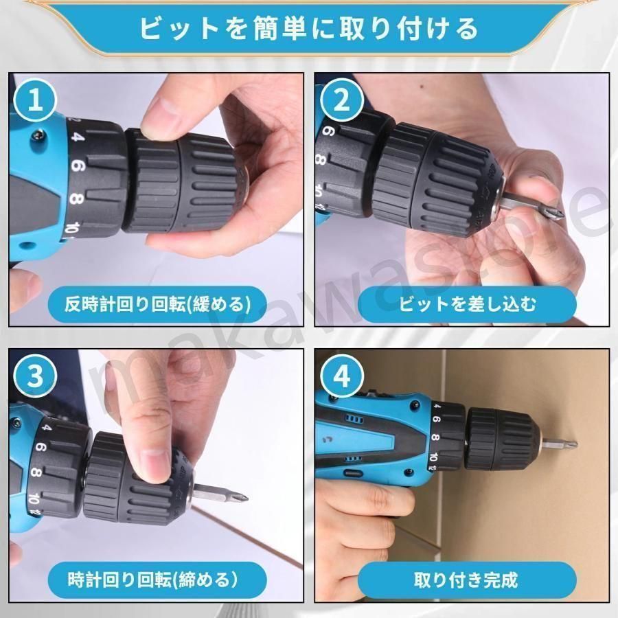 正逆転切り替えレバーでビットの回転方向を変えられます。ネジを締めるだけでなく、緩めることも可能です。レバーを中間に切り替えると安全ロックになり、初心者でも誤作動を避けられます。電動ドリルは過負荷保護&過熱保護で、電池パック内の制御回路が高温と負荷が大きすぎるになると自動停止し、電源を切って本体を約10分放置すると、過熱保護モードが解除されます。