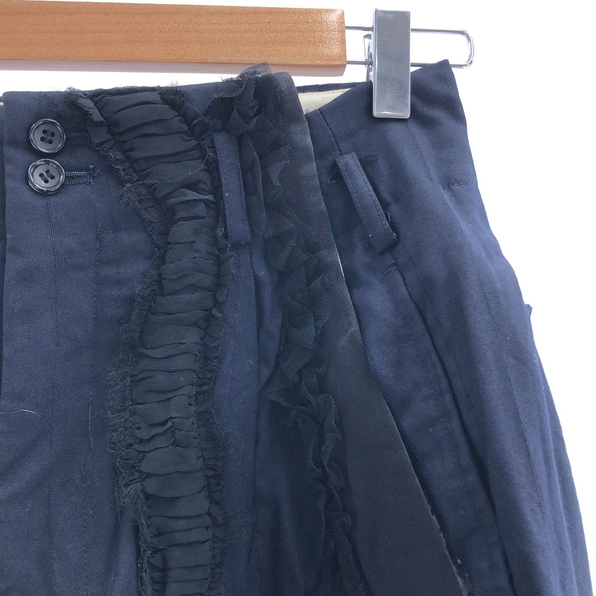 COMME des GARCONS | コムデギャルソン 2006 AW ストライプ チュールギャザー フリル装飾 ワイドパンツ SS ネイビー|ブラック レディース