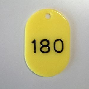 ●クラウン 番号札 小判型・スチロール製 番号入(連番) CR-BG32-Y 黄 100枚1セット