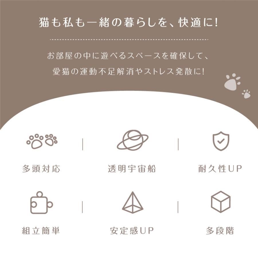 キャットタワー 爪とぎ 突っ張り 猫ハウス 大型猫 ネコ 猫タワー スリム 運動不足 透明宇宙船 猫用 高さ調整 多頭飼い おしゃれ 安定性抜群