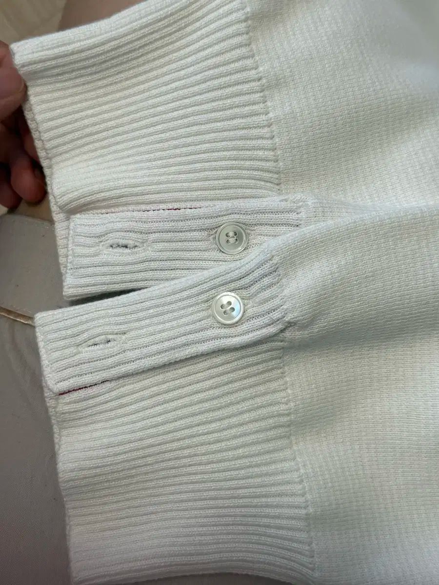 新品なので大きく気にならない汚れはあるかもしれませんが、洗濯をしてあるのでそのまま着ていただけると思います~着ていただくとフィットもとても綺麗に良く出るカーディガンです :) 安く購入される方はお気軽に連絡ください~~?