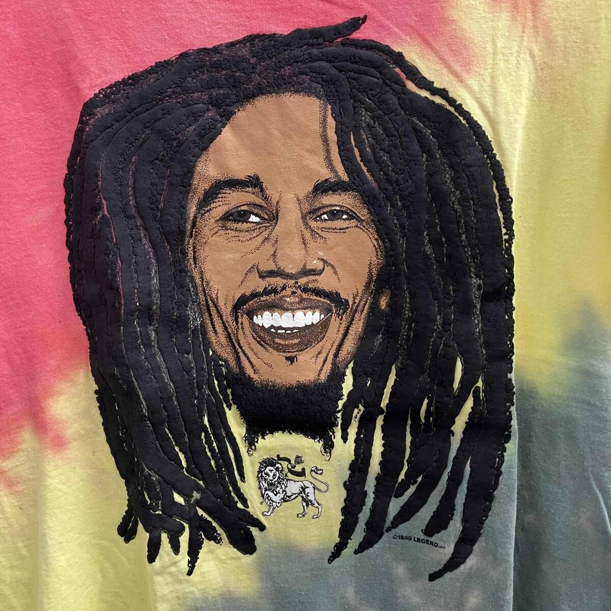 BOB MARLEY ボブマーリー 半袖Tシャツ Hanes 発泡プリント タイダイ 80 s 古着 サイズL ピンク マルチ