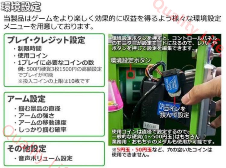 1.硬貨または日本円でも対応可能です。使用される硬貨は、硬貨の直径に基づいて設定されます。対応可能な硬貨の直径は22-28mm、厚さは1.7-2.2mmです。