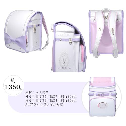 Coulomb クーロンランドセル女の子 最新アナイスモデル ツヤありパール生地 A 4フラットファイル対応 軽量大容量女子 パープル ピンク ホワイト 儿童?包 小学校 入学祝い ギフト 女の子 8 cbcd 733