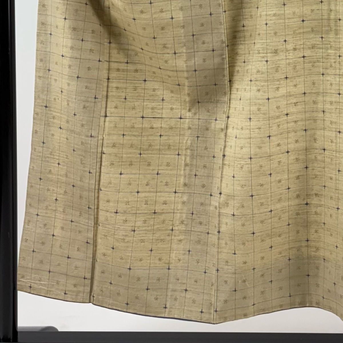 紬 身丈152.5 cm 裄丈63.5 S 袷 格子 幾何学 ベージュ 正絹 秀品