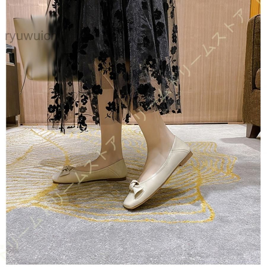 ぺたんこ靴 レディース バレエシューズ パンプス ローヒール リボン付き ポインテッドトゥ フラットシューズ 履き心地 すべり止め 柔らか 低反発 歩きやすい