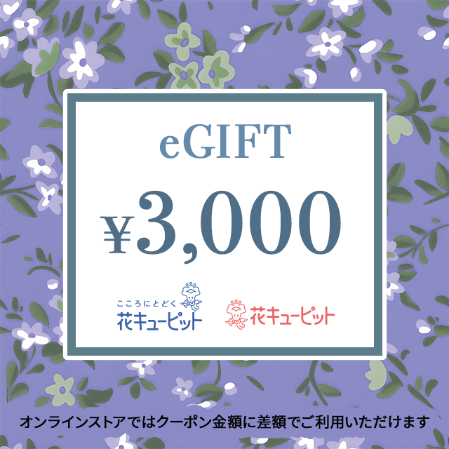 ・全国の花キューピット加盟店(一部店舗を除く)または、ネットショップで生花・鉢物・その他園芸用品(税込3,000円まで)とお引き換えいただけるチケットです。