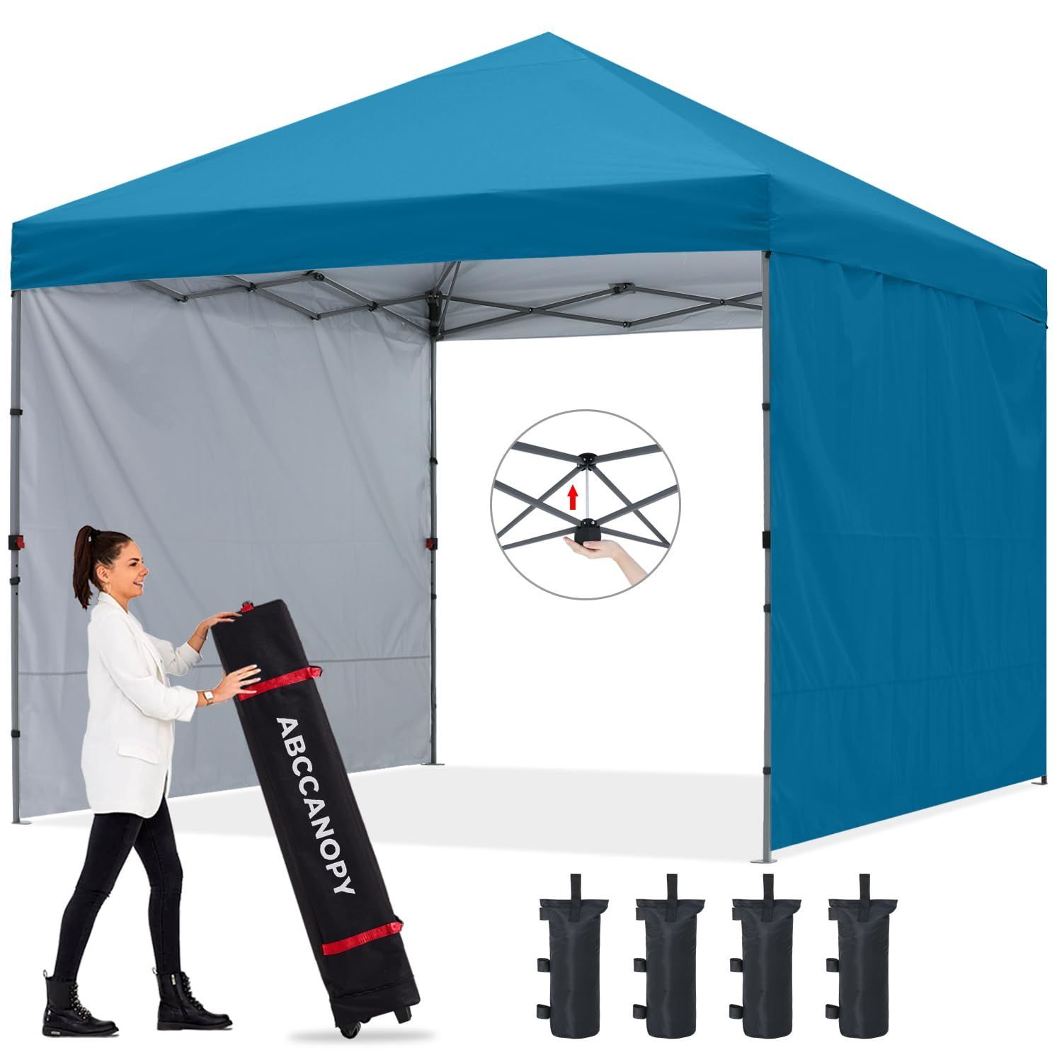 ABCCANOPY ワンタッチテント タープ テント 3mx3m 2.5mx2.5m 簡易テント 大型 サイドシート2枚 センターロック 三段階調節 耐水 UVカット 日除け 遮熱 紫外線カット 耐風性 組立簡単 キャスターバッグ付き (3M/ターコイズ)