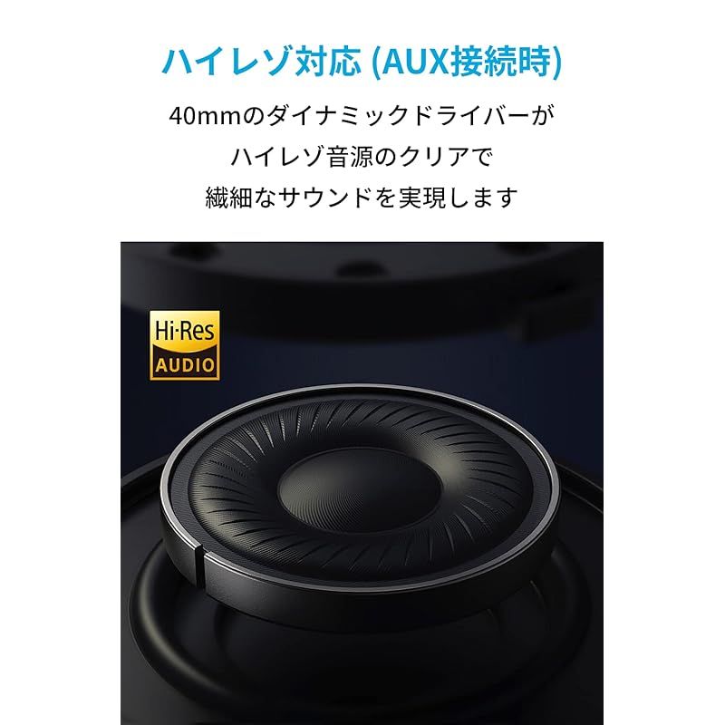 ハイレゾ対応の高解像度サウンド:40mmのダイナミックドライバーが、ハイレゾ音源のクリアで繊細なサウンドを実現します。(※ハイレゾ対応はAUXケーブル接続時)