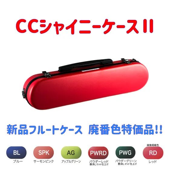 ファイバー製軽量ケースの定番として長年にわたり人気の、CCシャイニーケース フルートケース(税込定価¥18,700)です。