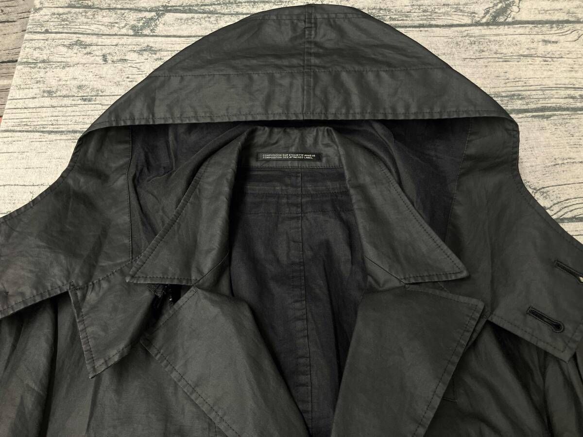 コート ブラック Yohji Yamamoto POUR HOMME コーティングリネンフーデットコート HM-J 02-322 size 3 日本製