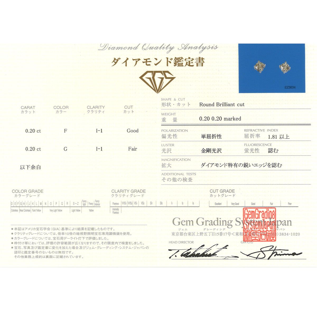 クラリティ:I1 カラー:F カット:Good