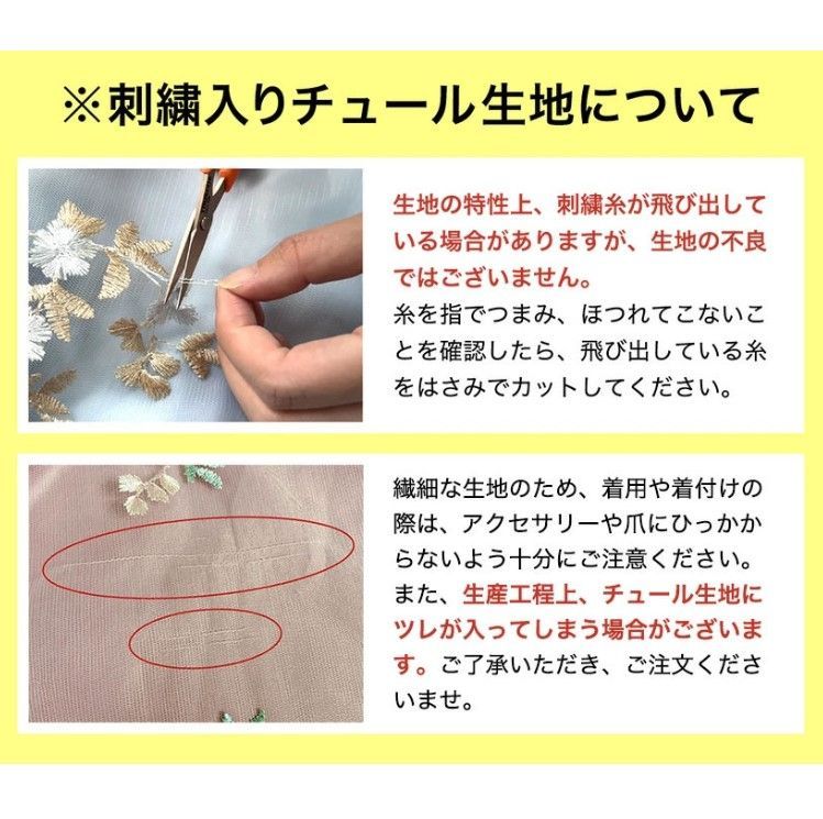 キャサリンコテージで人気のドレスに使われている花刺繍チュールを使用。さらに襟元にレースをあしらい、華やかなデザインに。