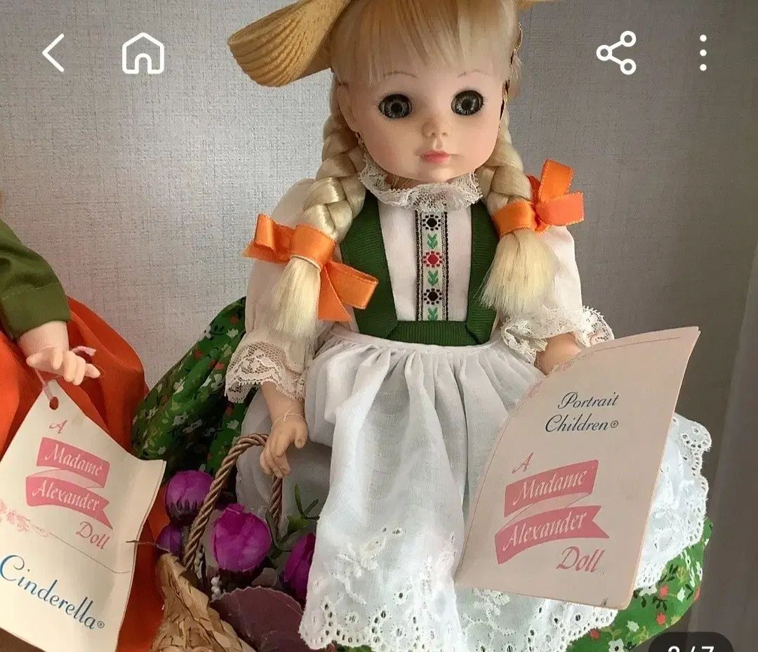 マダムアレクサンダーハイジガールドール。三つ編みの髪やリボンのディテールも素敵です。コレクション価値の高い人形です。ご不明な点がなければ、すぐに安心してお支払いいただけます!