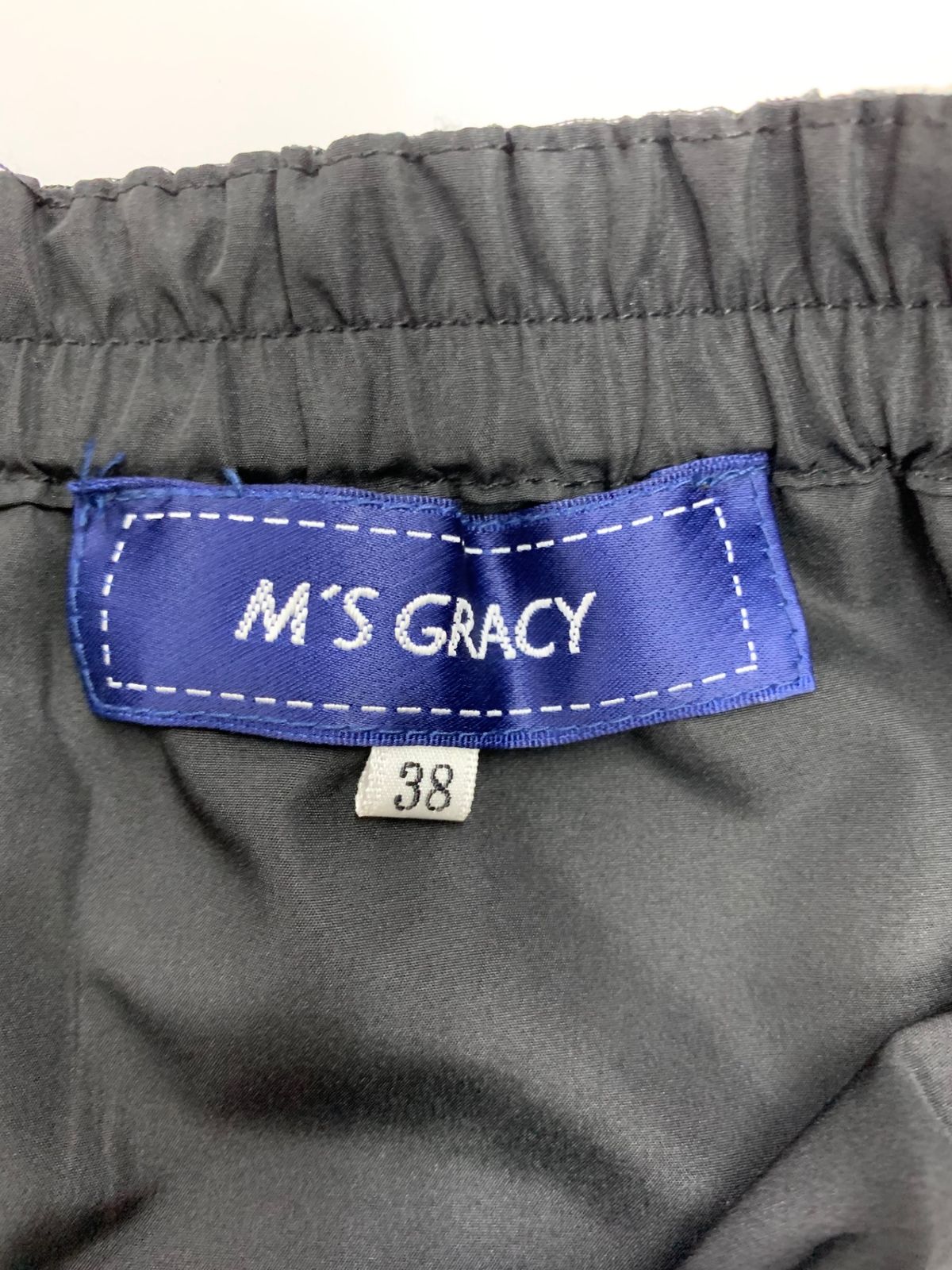 エムズグレイシー リボンプリントチュール 517110 スカート 38 ブラック