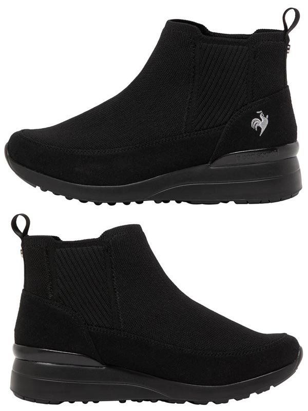 ルコックスポルティフ レディースブーツスニーカー アヌー ブラック シルバー lecoq sportif ANOULD lu 5 fbt 92 lz BKSL ヒールアップ 軽量 消臭機能 発熱蓄熱素材インソール サイドゴア