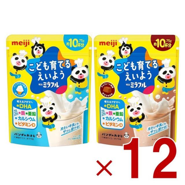 商品名:明治 ミラフル バニラミルク風味 チョコレート風味 2種 アソート セット 育てるえいよう 75g 約10杯分 DHA 鉄 亜鉛 カルシウム ビタミンD 各12個