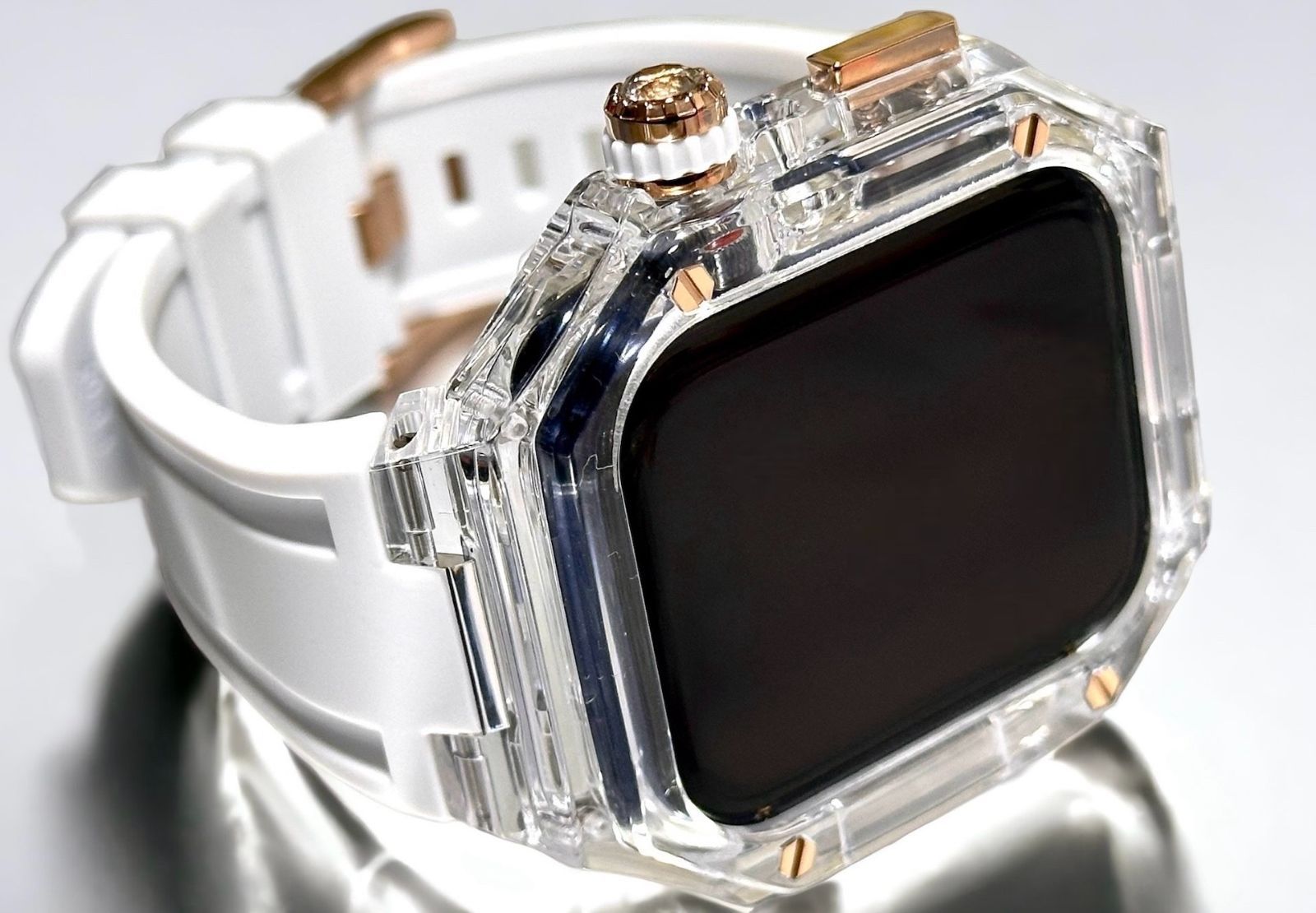 ローズゴールド クリア ホワイト アップルウォッチ ラバーベルト カバー ケース 40 mm 41 44 45 4 5 6 7 8 9 se スポーツ メンズ レディース 4スクリュー Apple Watch バンド