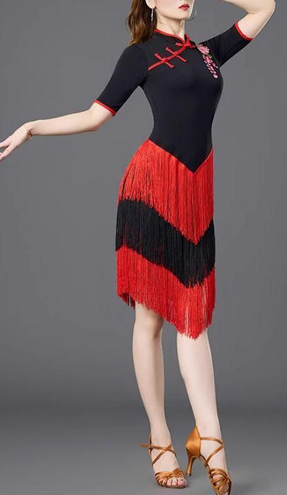 社交ダンスドレス ラテンドレス 半袖 フリンジ 競技 オーダーメイド