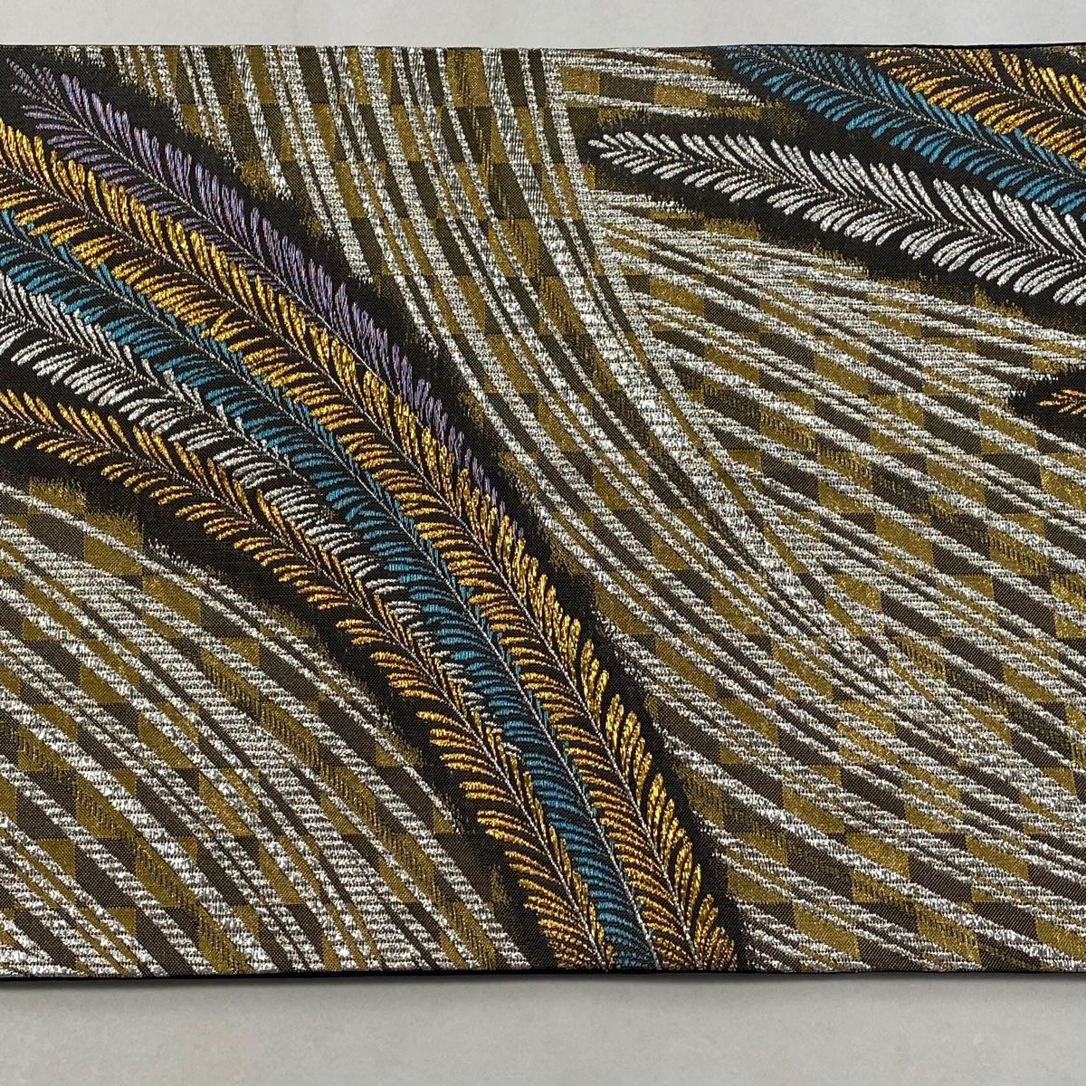 袋帯 秀品 市松 葉柄 箔 金糸 金色 六通 正絹