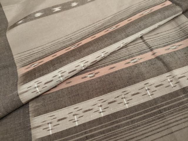 平和屋着物 上質な紬 伝統工芸 陽三彩 横段文 反端付き 正絹 ud