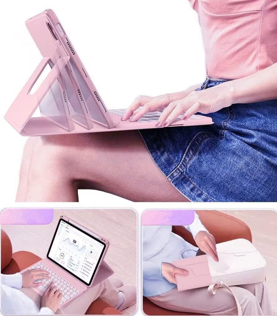 iPad Air 6 11インチ iPad Air5 Air4 Pro11 2022キーボードケース 縦 iPad Air第6世代(2024) 第5世代 第4世代 カバー ペン収納 耐衝撃 透明 クリア 背面カバー マグネット分離式 丸型キー キーボード 付き 可愛い ピンク