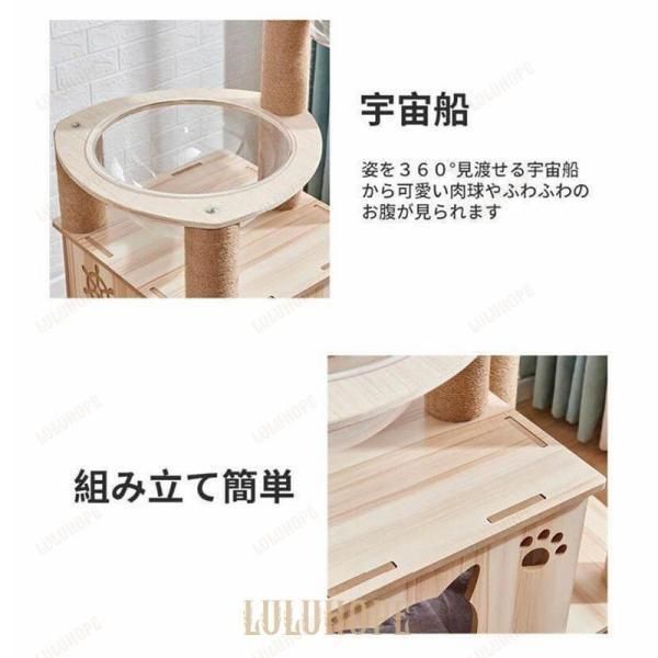 すべての色と在庫に在庫がありますキャットタワー 猫タワー 据え置き型 木製 爪とぎ 木登りキャットポール 猫ベッド おもちゃネコタワー 丸いベッド 透明宇宙船 展望台 木目調 段差 省スペース