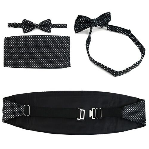 夜の正礼装、タキシードにお使い頂けるカマーバンドと蝶ネクタイのセット。