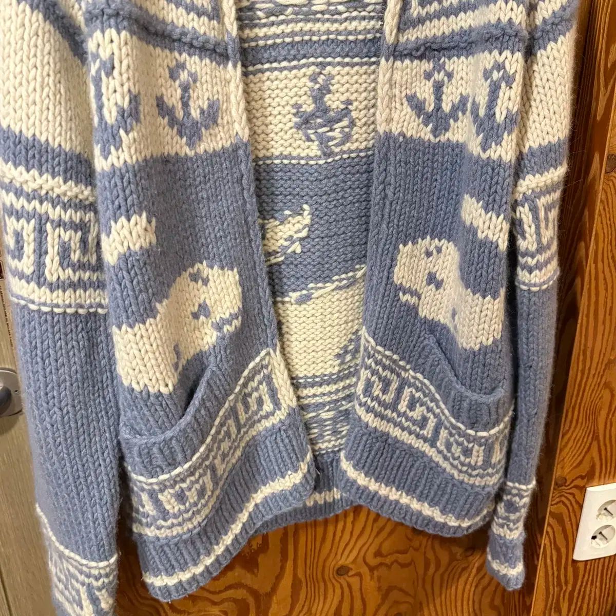 カウガールセーターならではの太いウール糸で手編みした感じの商品です