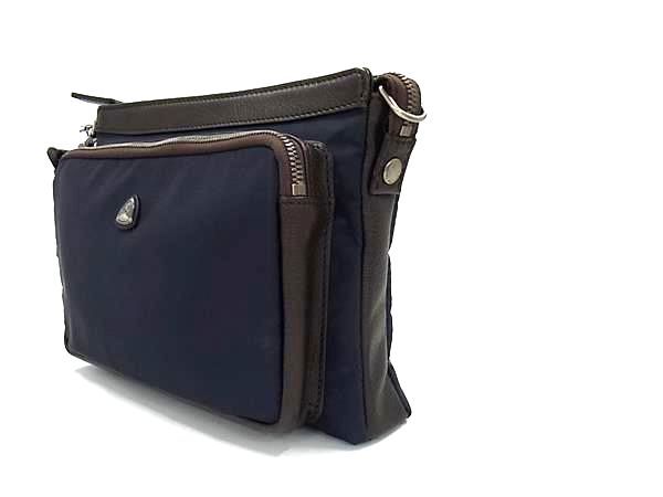 フジタカ ナイロン×レザー 2 WAY セカンドバッグ クラッチ ショルダー メンズ ネイビー系 BN 4781