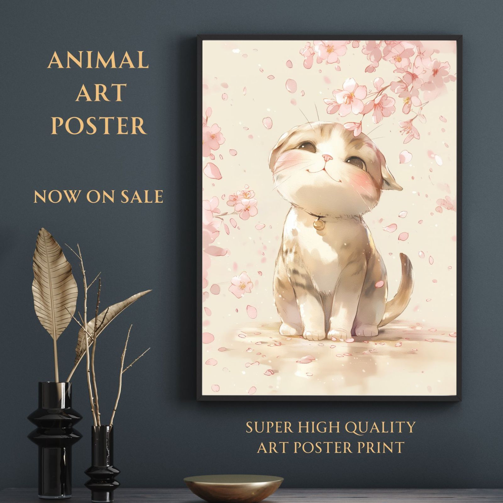 春らしいスコティッシュフォールド猫のアニマルアートで、新しい生活をスタートさせてください。
