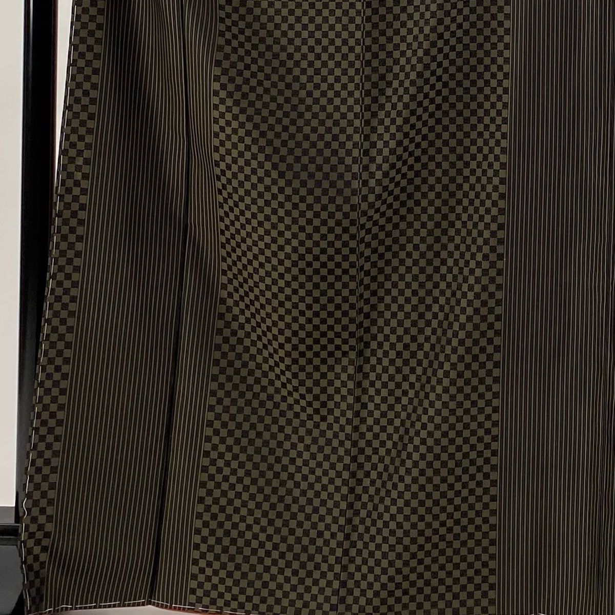 お召 身丈168 cm 裄丈65 M 袷 縦縞 市松 焦茶色 正絹