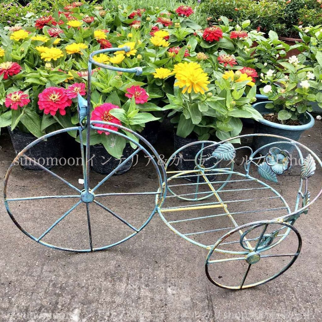 プランタースタンド 鉄 お洒落 庭の装飾 プランターラック インテリア アンティーク調 ブルー ヴィンテージ調 おしゃれ 植木鉢 ガーデン雑貨 ガーデンインテリア スタンド シャビー加工 自転車 ガーデン 8-14 雑貨 ガーデニング