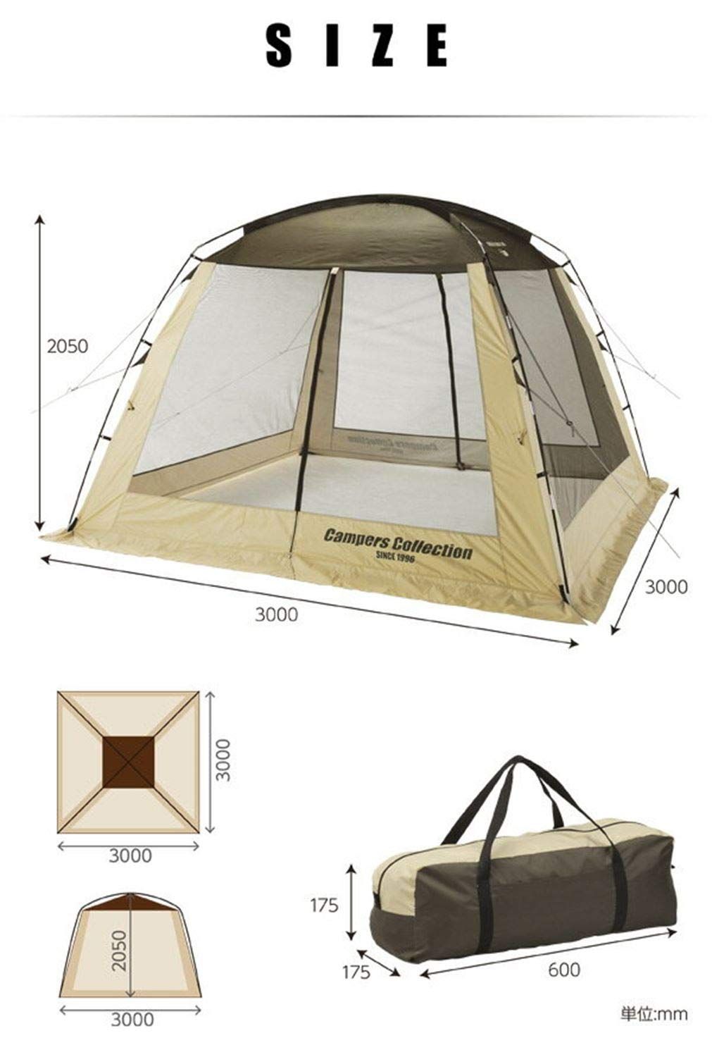 [キャンパーズコレクション 山善] スクリーンハウス キャンプ アウトドア 4人用 通気性 日除けシート付属 スクリーンハウス300 PSH-300 (クラシックベージュ/ネオベージュ)